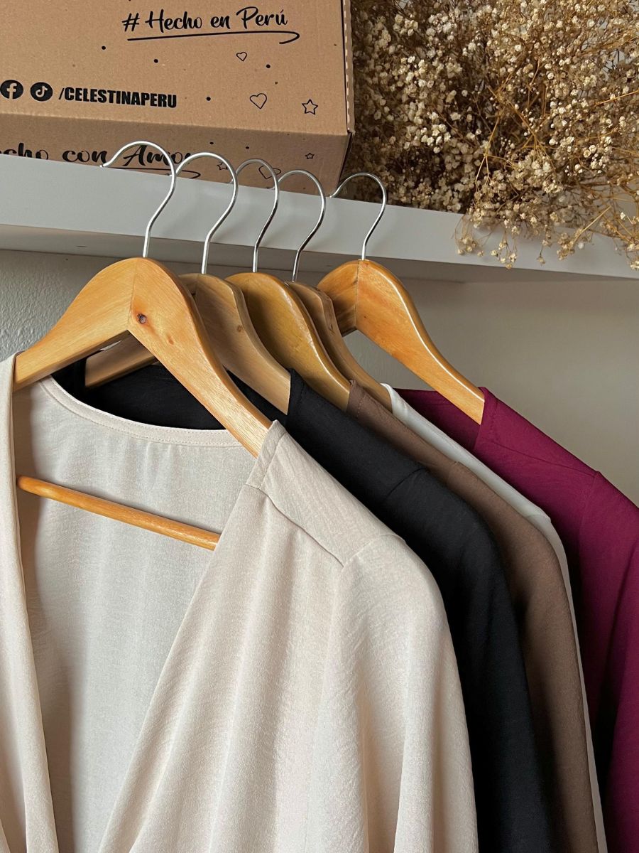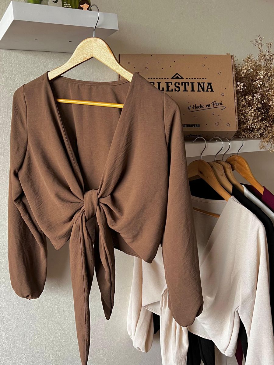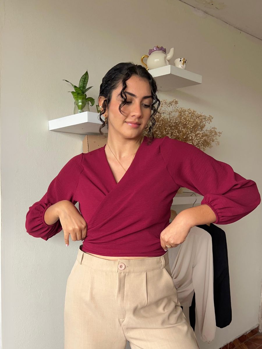 Blusa envolvente de manga larga. Ajustable al gusto, más de 5 maneras de usarla. Hecho en tela vienna. Producción 100% peruana.