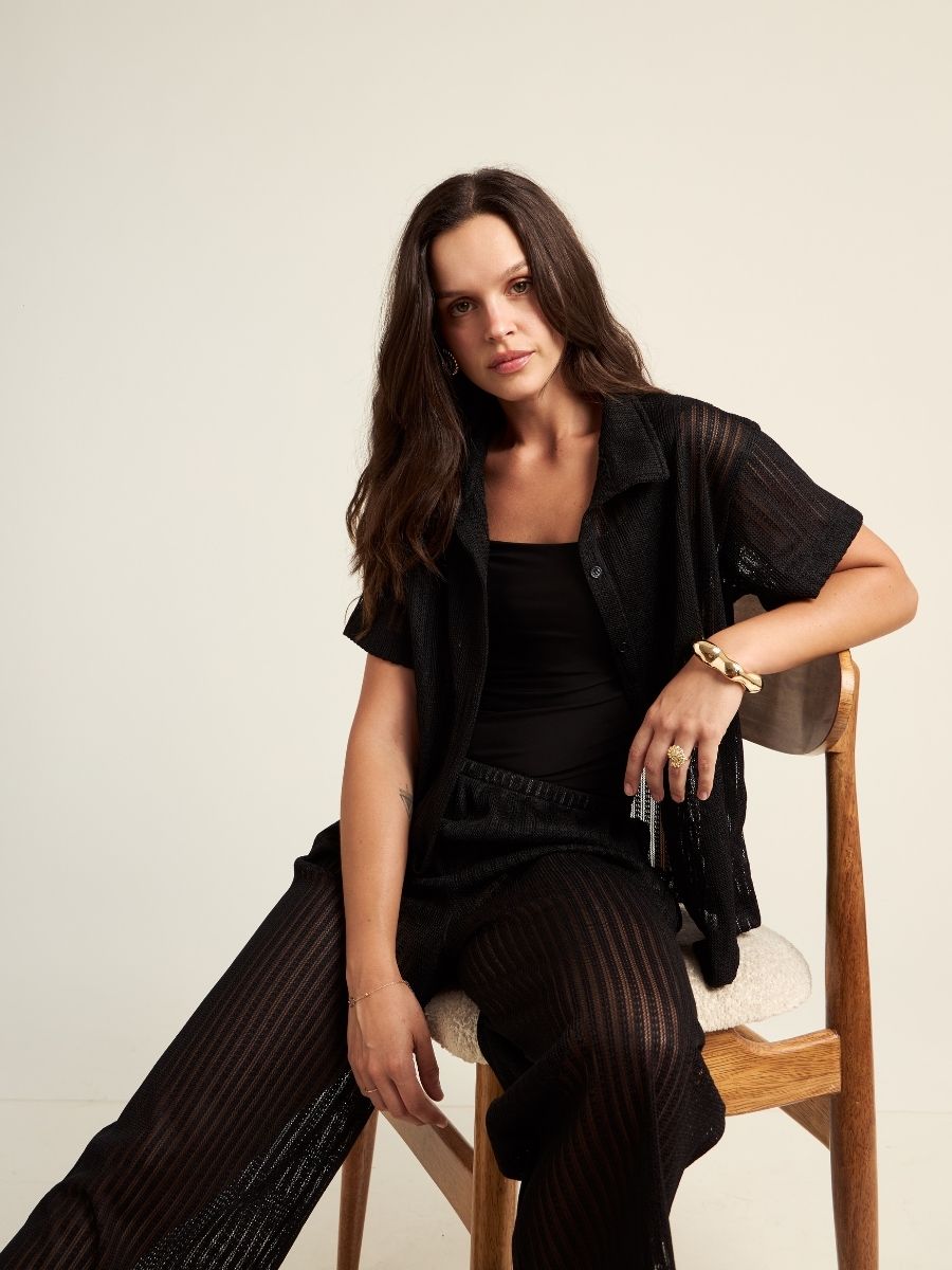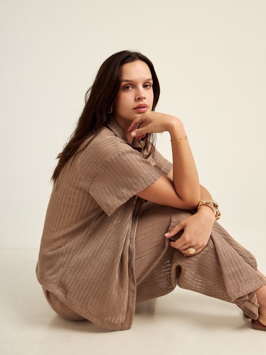 Blusa manga corta holgada, con cuello camisero y botones delanteros. Fresca y ligera, ideal para el verano. Hecha en tela Itzel. Producción 100% peruana.