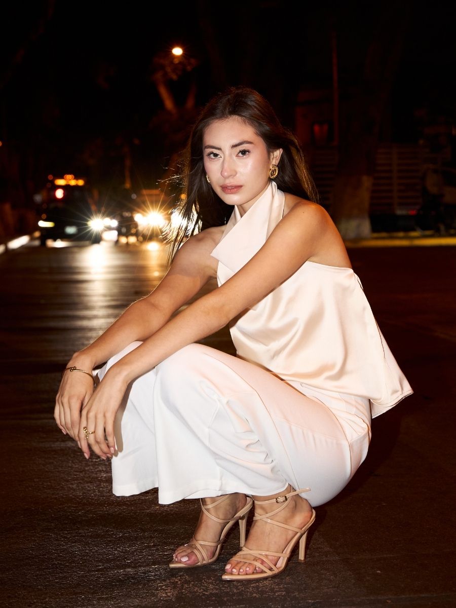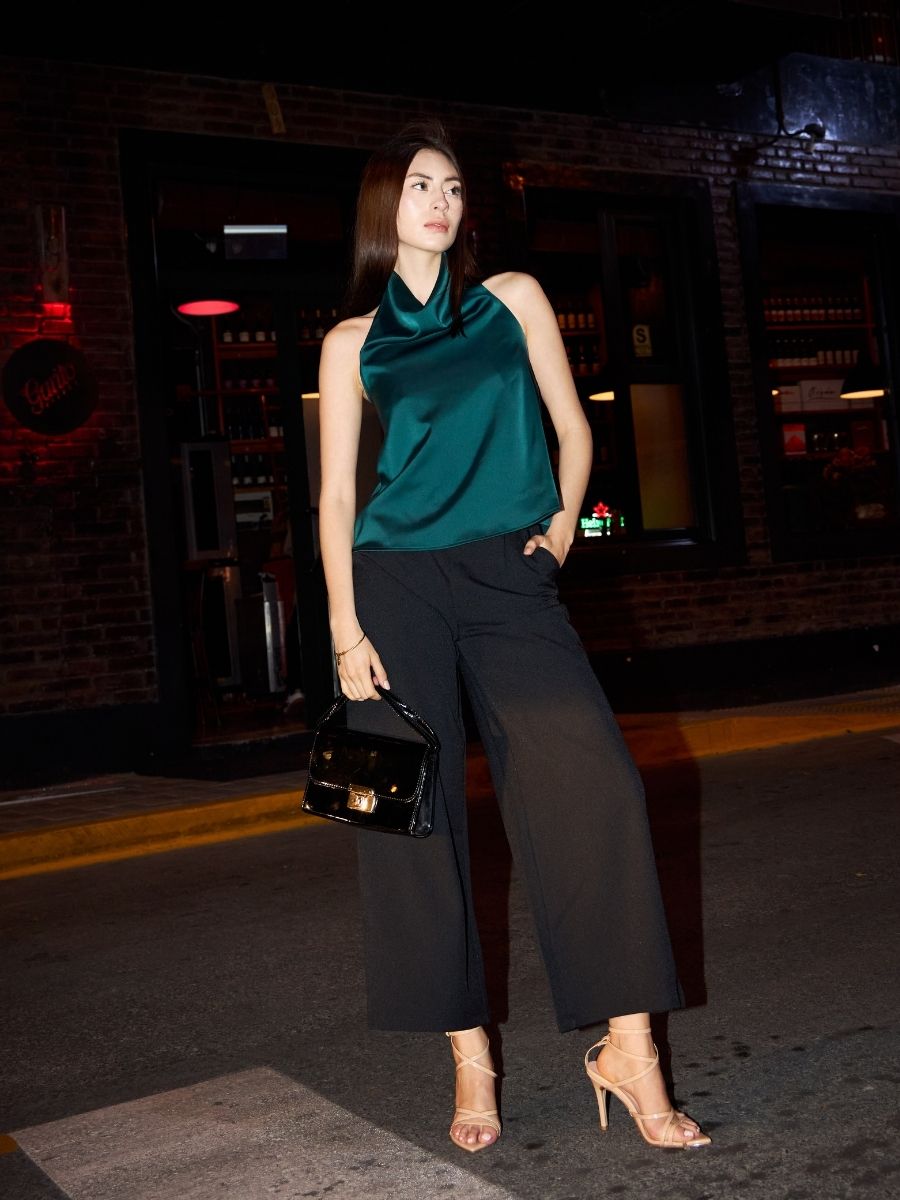 Blusa halter de cuello drapeado. confeccionada en tela satinada de caída suave que aporta un acabado elegante y femenino. Su diseño de espalda descubierta realza la silueta y estiliza la parte superior del cuerpo, convirtiéndola en una prenda ideal para looks nocturnos o eventos especiales. Combina perfectamente con pantalones de vestir, faldas o jeans para un estilo sofisticado y moderno.