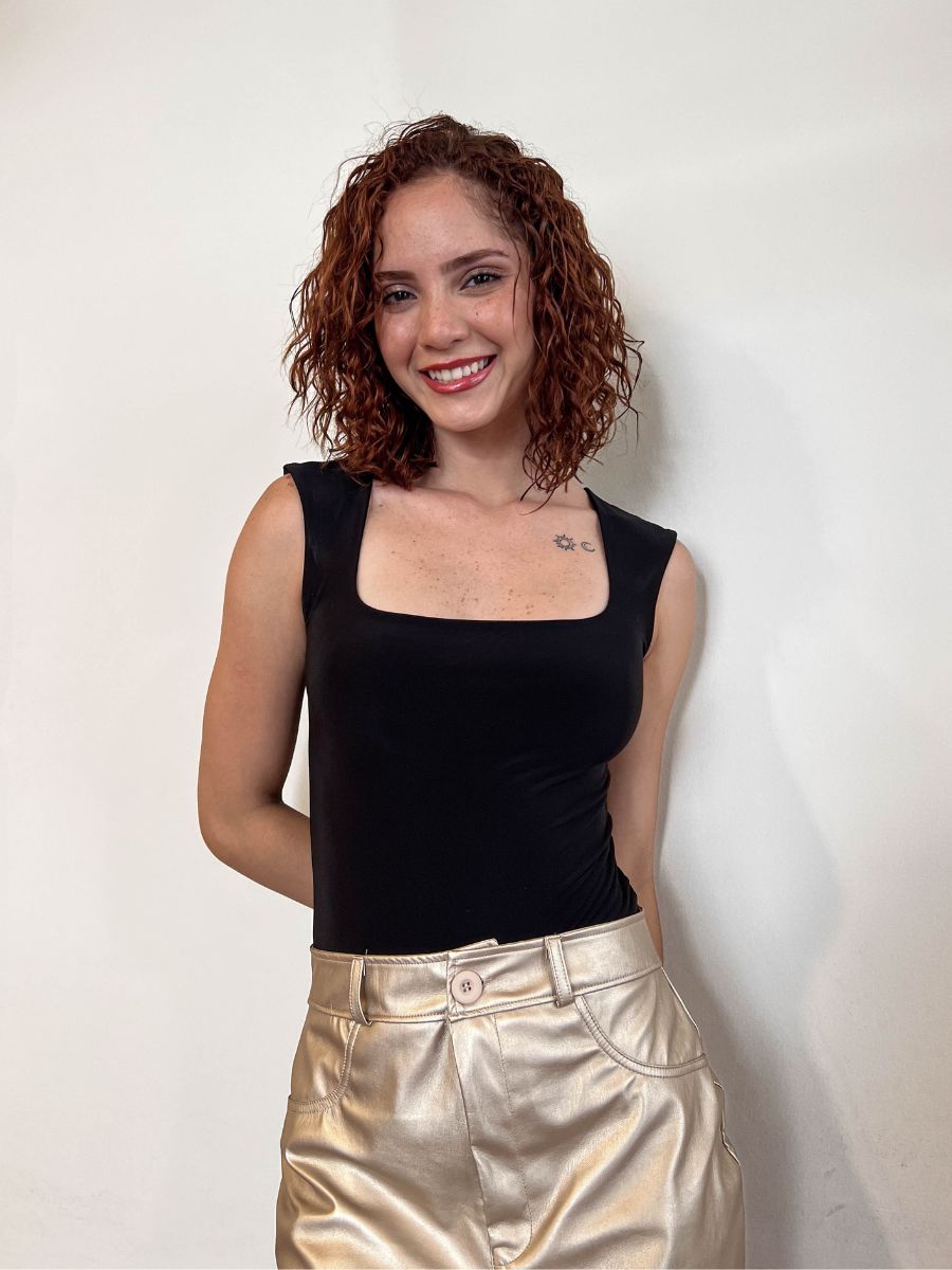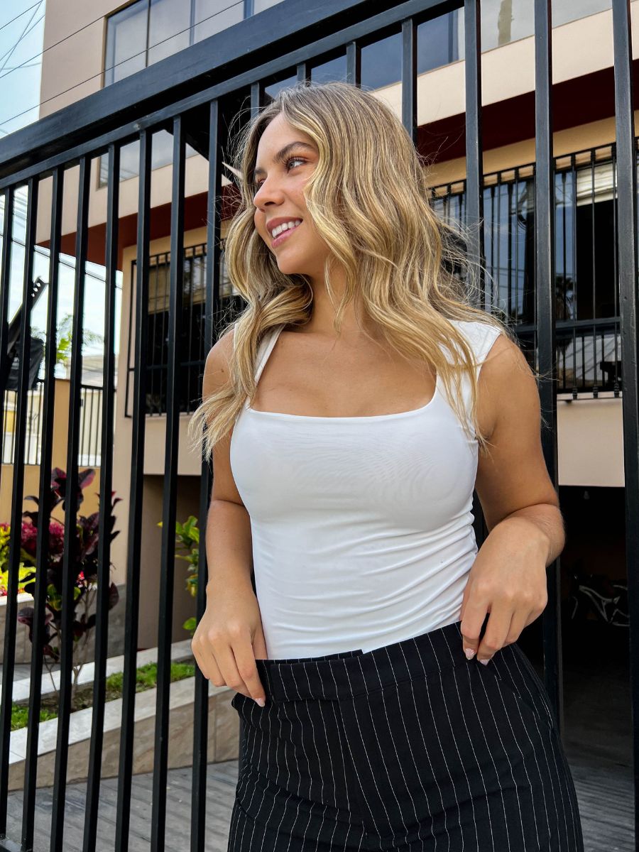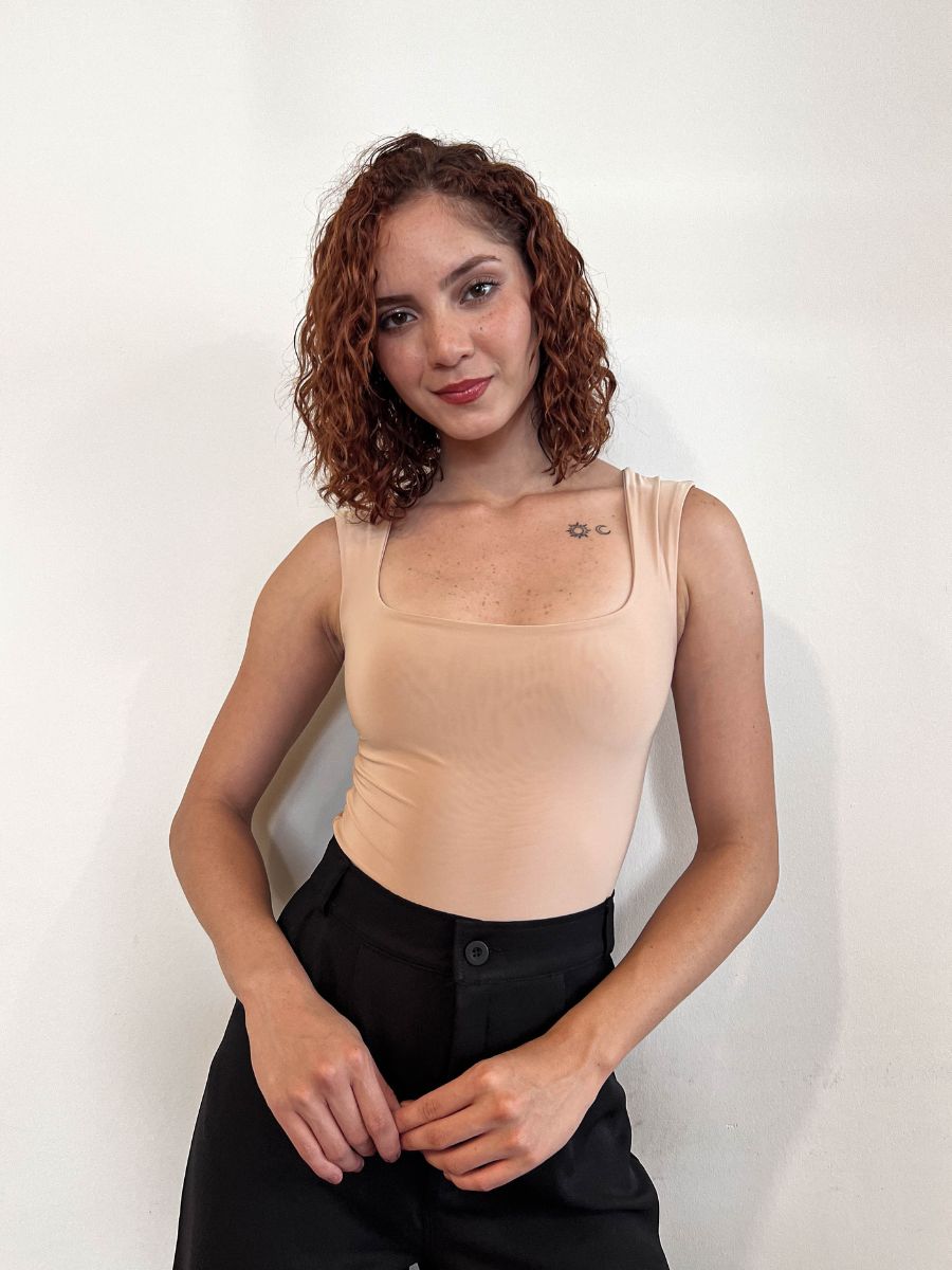 Bodie básico ceñido al cuerpo con escote cuadrado.