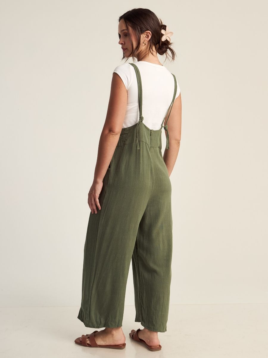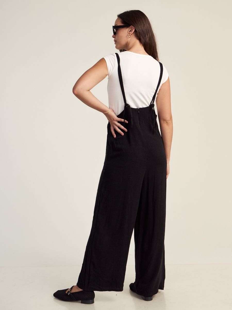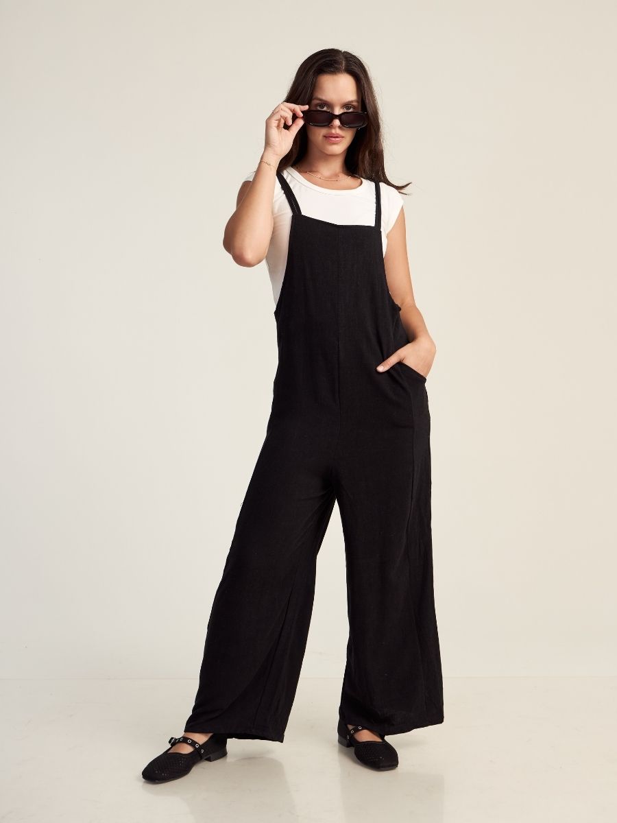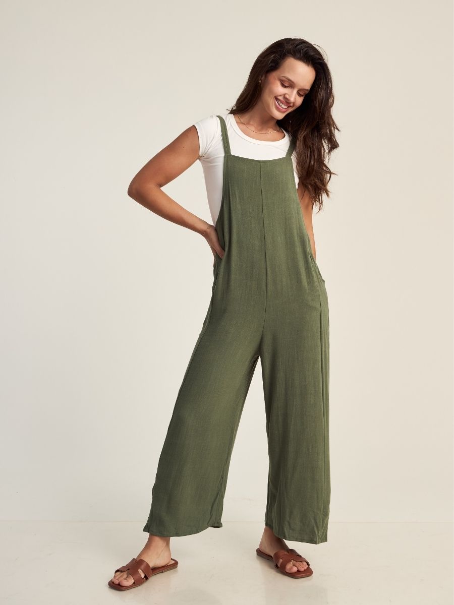 Enterizo holgado, con tirantes regulables y bolsillos laterales funcionales. Hecho en lino savanna, para mantenerte cómoda y fresca en el verano. Producción 100% peruana.
