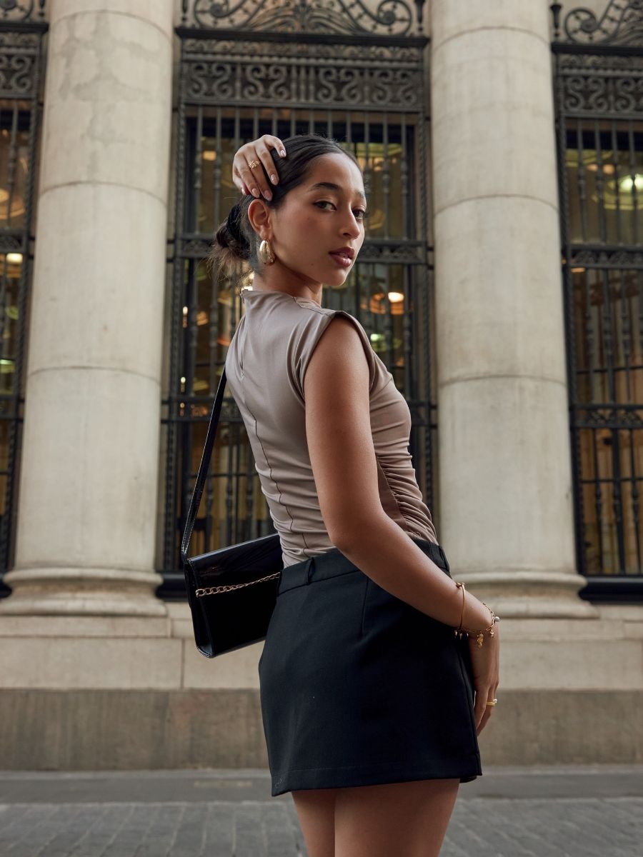 Falda short con abertura frontal para mejor movimiento y comodidad. Hecho en tela vega. Producción 100% peruana.