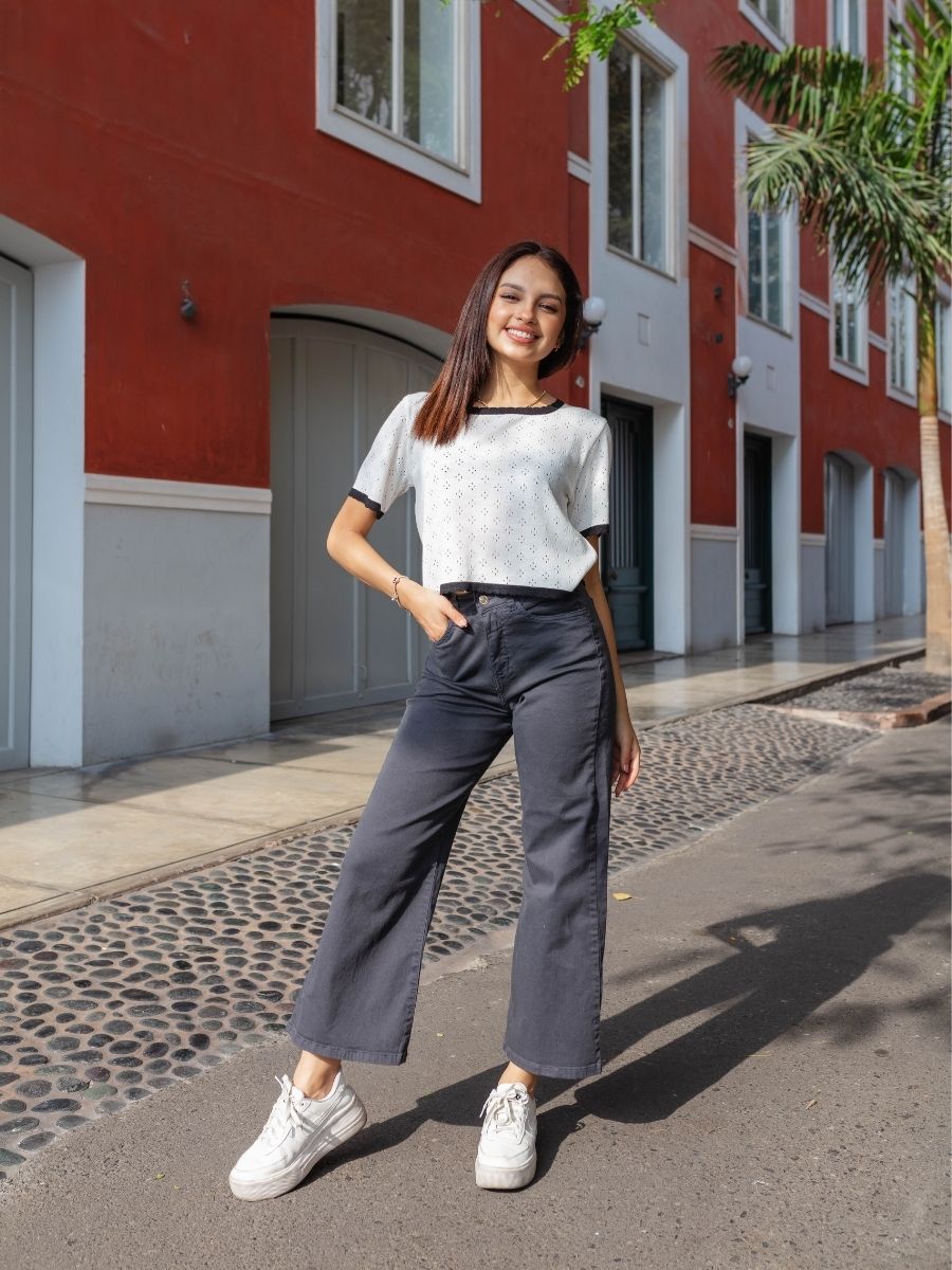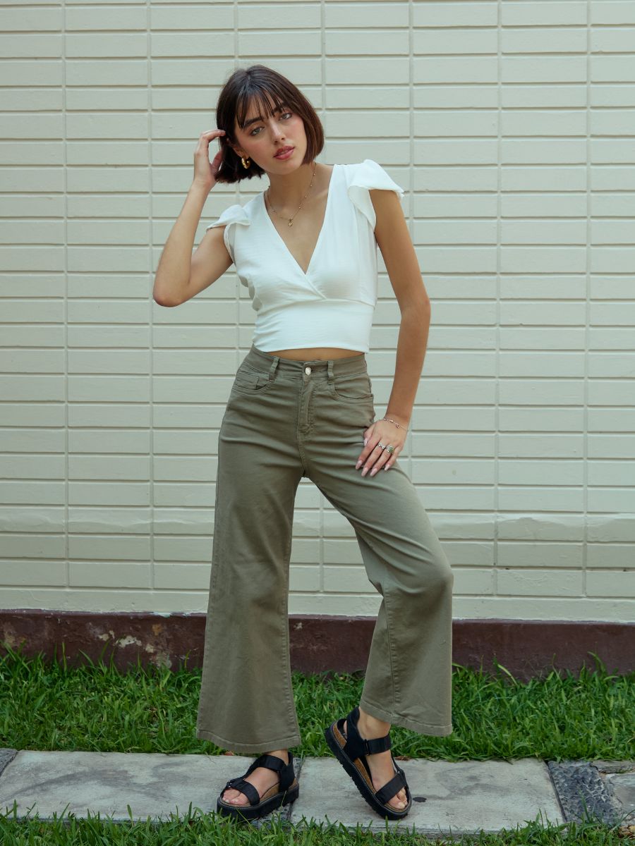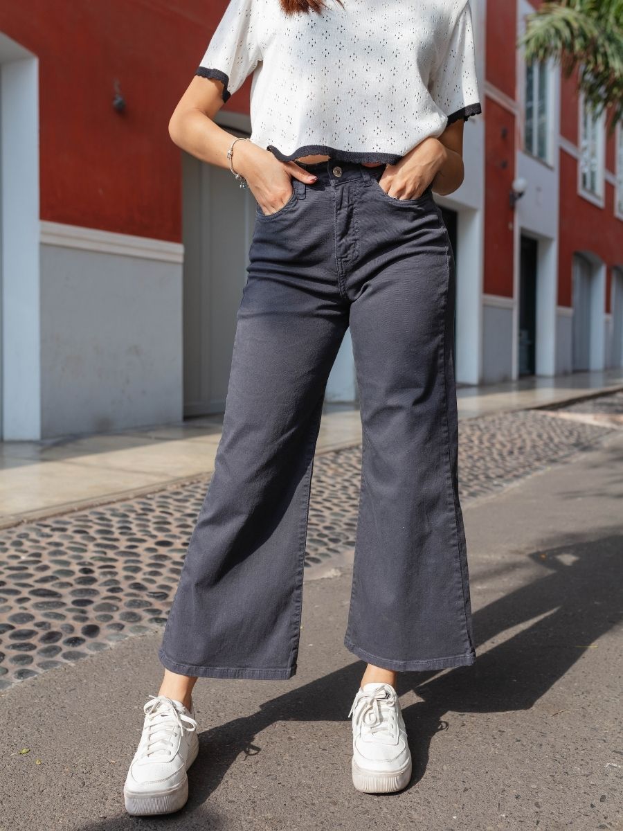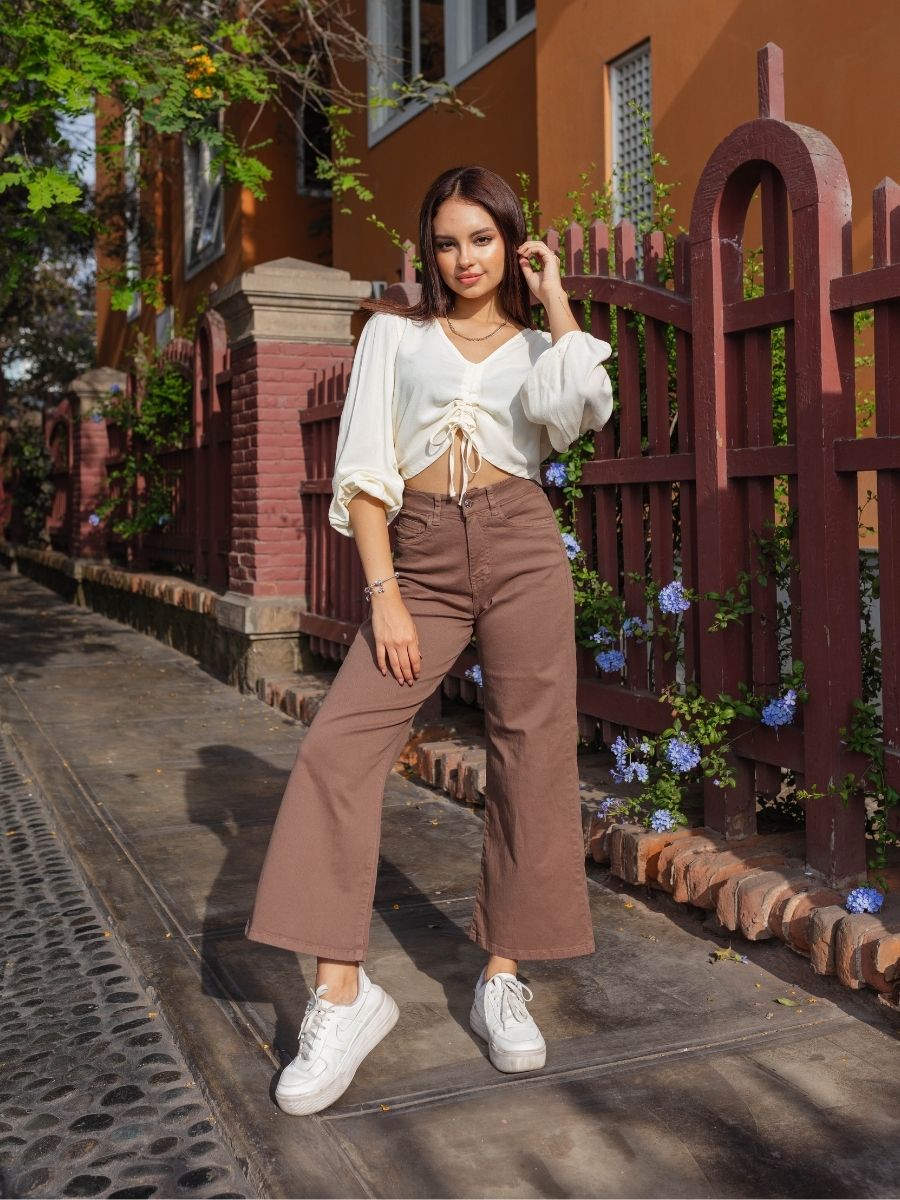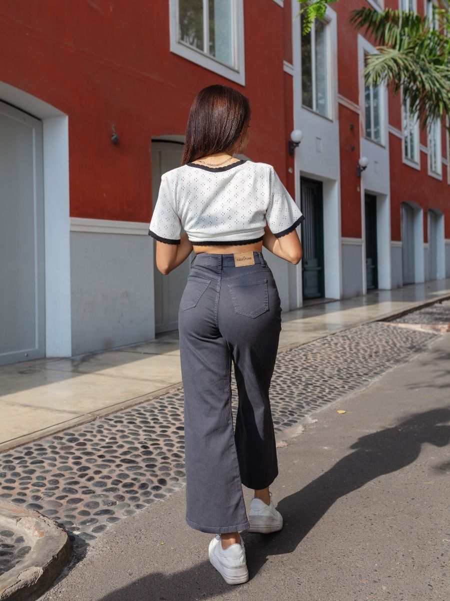 Pantalón semi palazzo con bolsillos delanteros y traseros funcionales. Hecho en drill stretch comfort que se ajusta al cuerpo estilizando la figura y brindando comodidad. Producción 100% peruana.