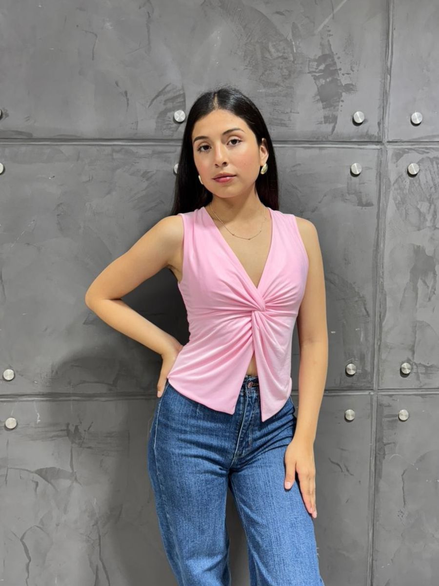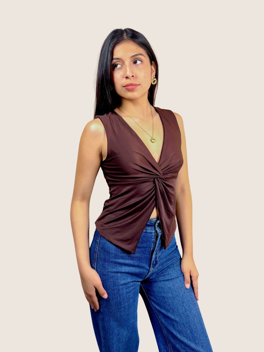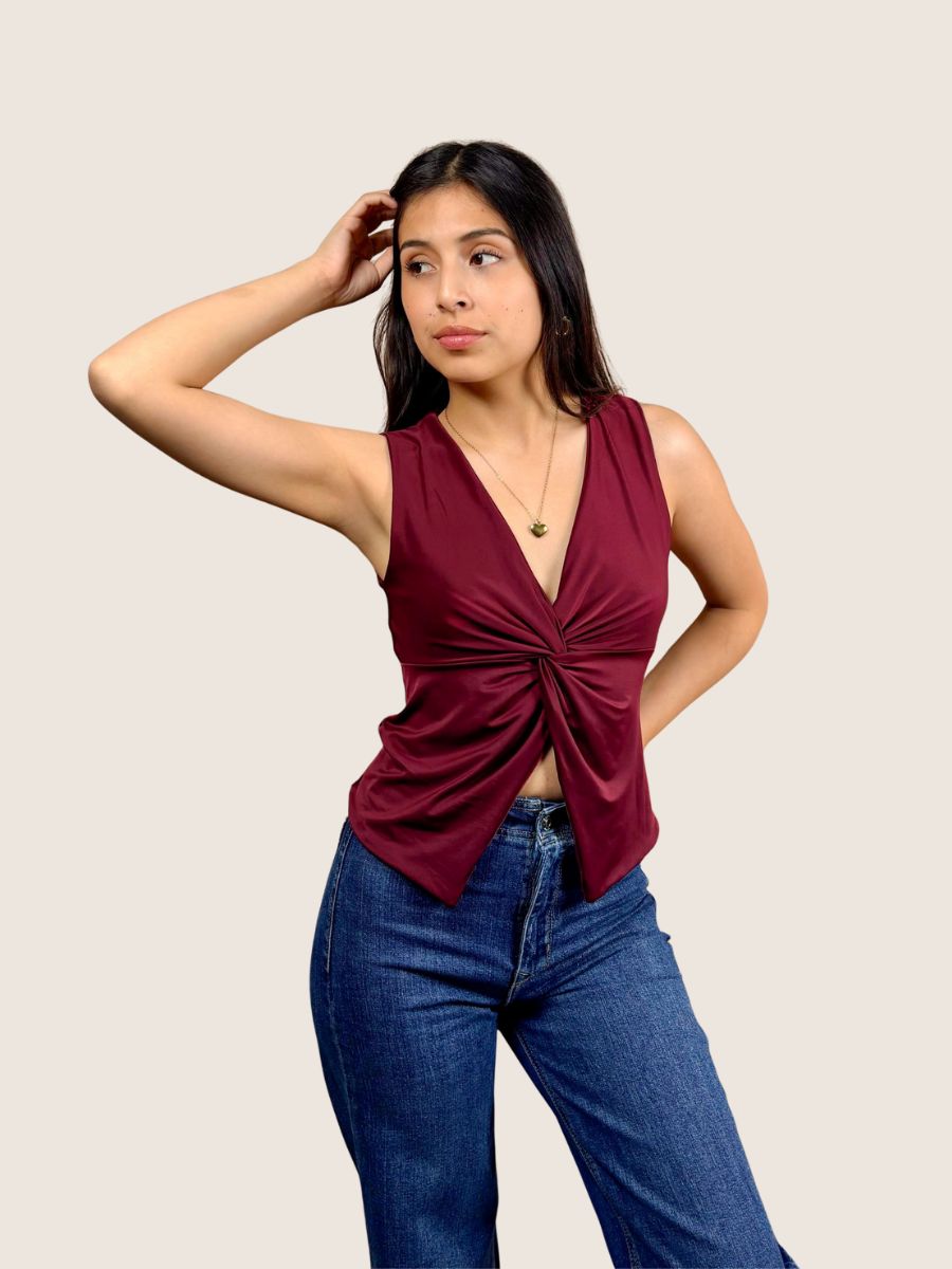 Top escote en v con detalle cruzado en busto. Hecho en tela Venecia. Producción 100% peruana.