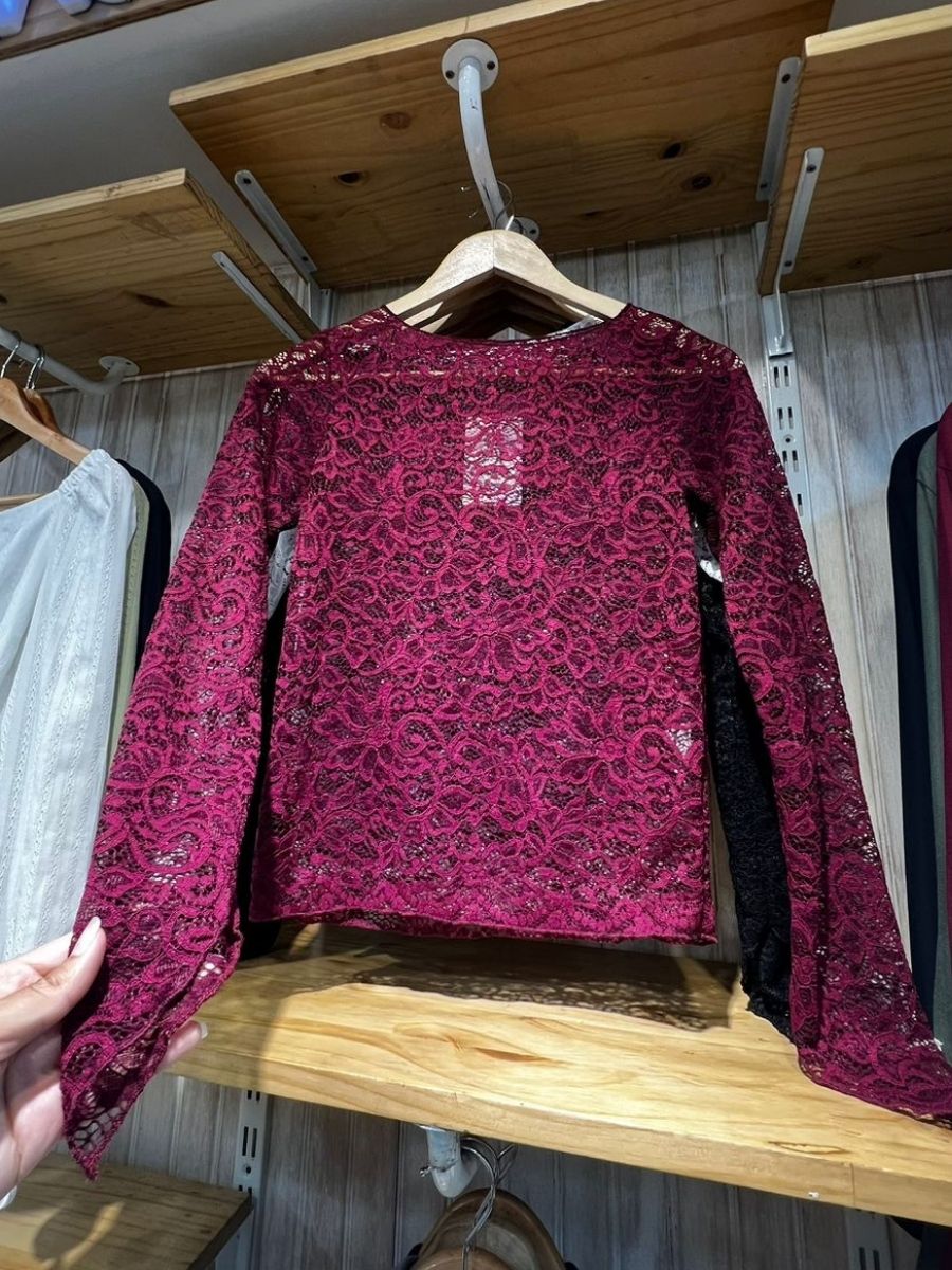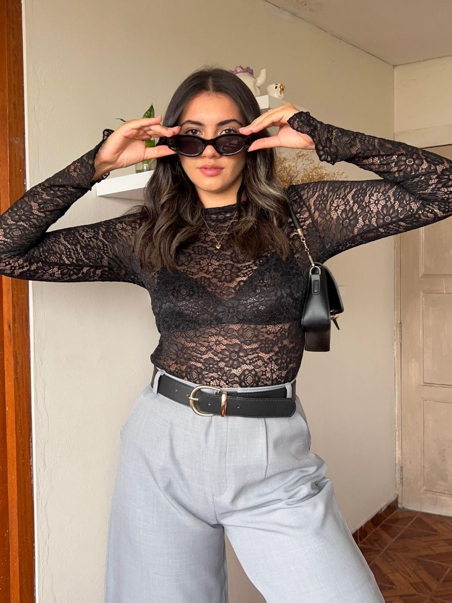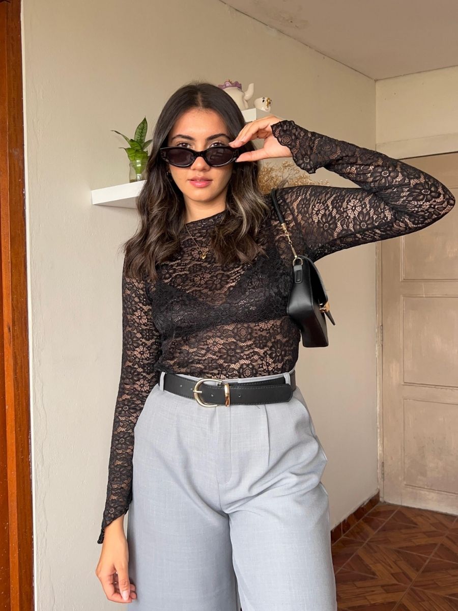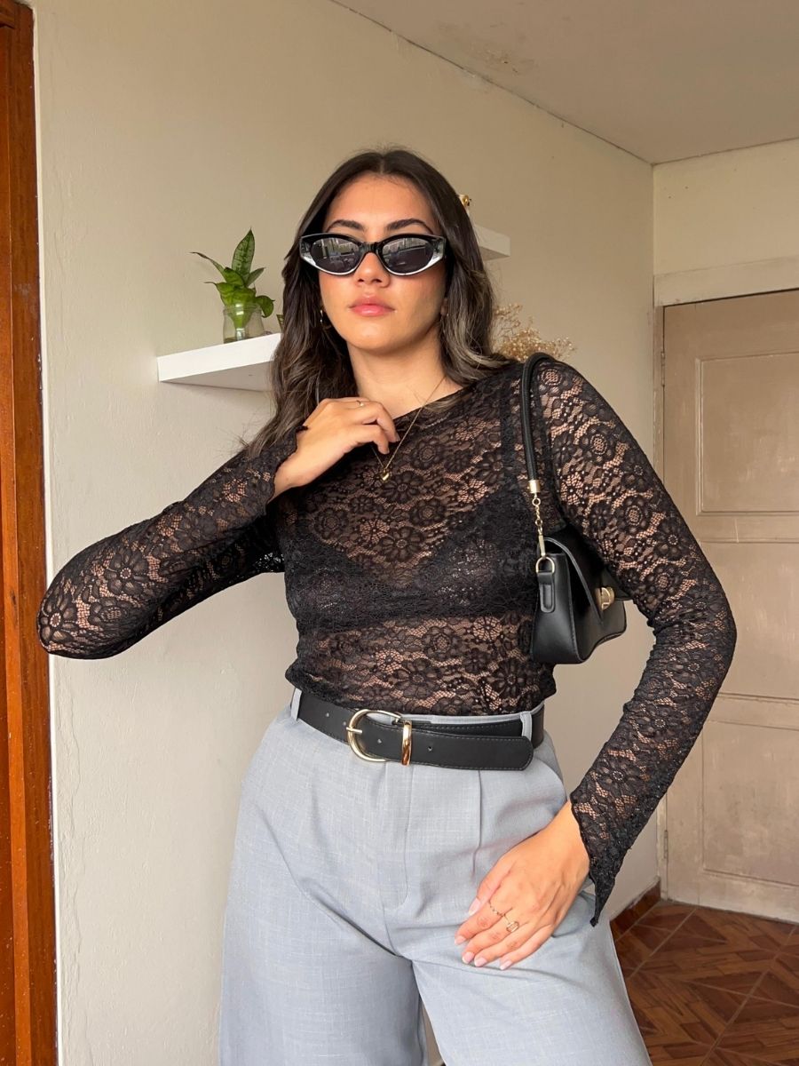 Top manga larga de puño asimétrico, hecho en encaje vipiur. Producción 100% peruana.